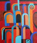 2008Abstract schilderij van een kapstok, met zwarte lijst.